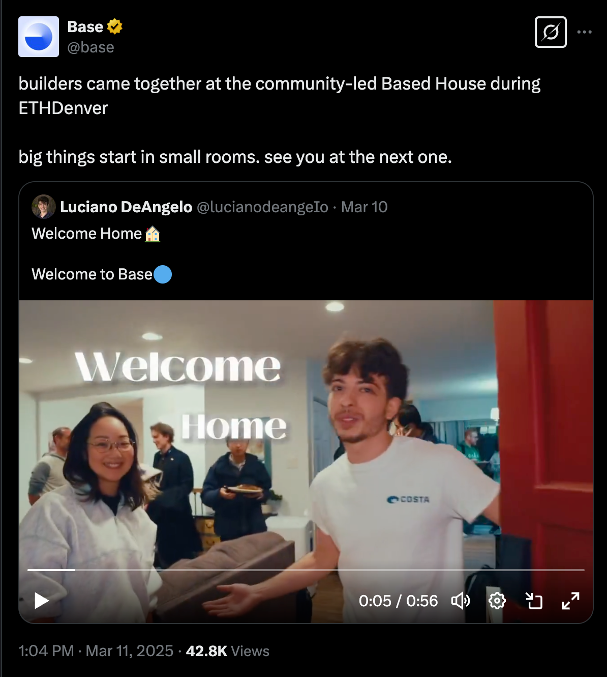 The video was reposted by the official Base Twitter account and has over 100k impressions between the original and repost